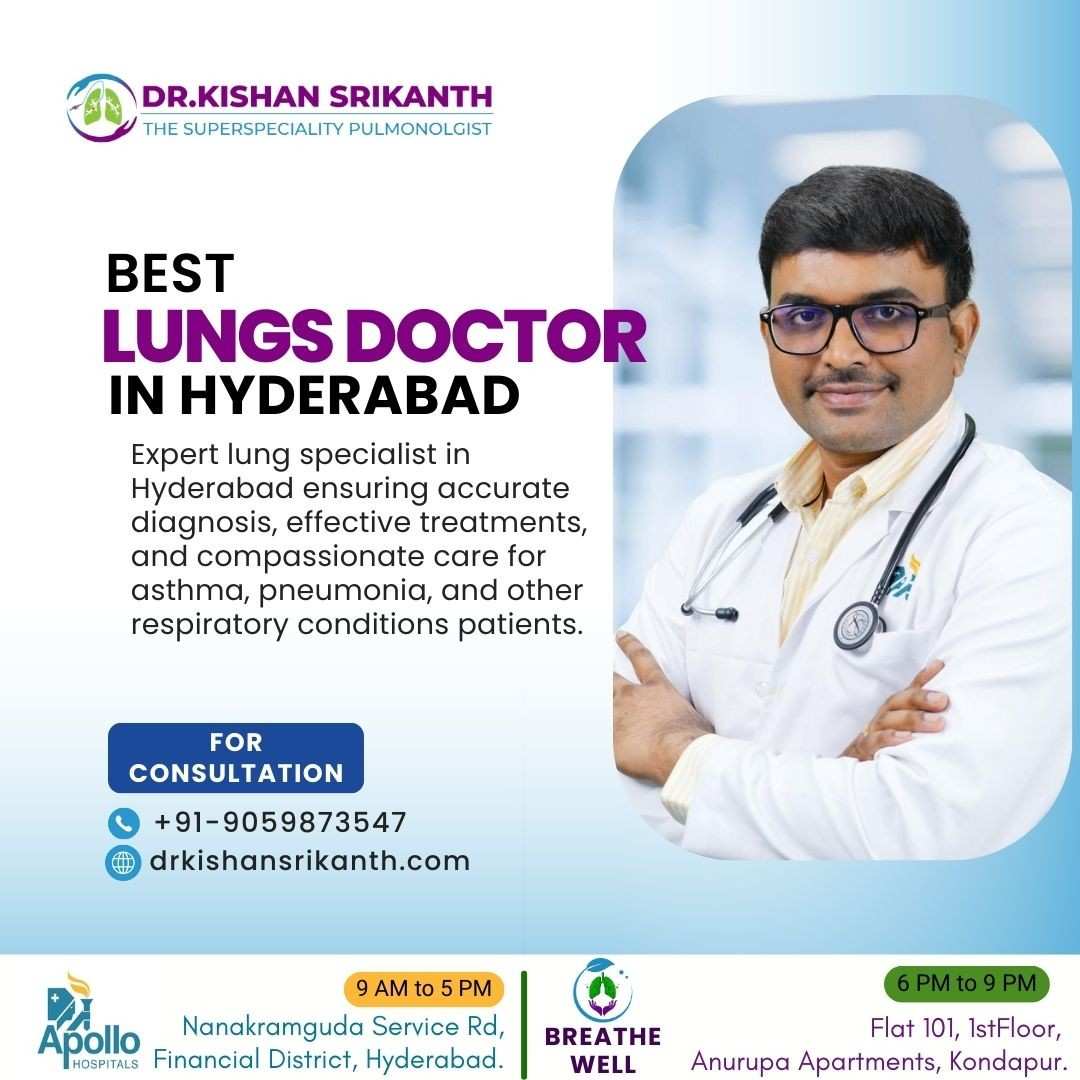 Dr. Kishan Srikanth is recognized as one of the best lung specialists in Hyderabad, providing expert care for a wide range of respiratory conditions. He specializes in treating asthma, COPD, lung infections, and chronic breathing disorders with advanced diagnostic methods and personalized treatment plans. Known for his compassionate care and clinical expertise, he helps patients achieve better lung health and improved quality of life.