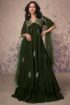Grace every occasion with timeless elegance in this Fern Green Chinon Silk Embroidered Anarkali Dress with Dupatta from Like A Diva. Designed to exude charm and sophistication, this stunning ensemble is crafted from premium Chinon silk, offering a soft, flowy silhouette that enhances your natural grace. The flared and tiered Anarkali design creates a regal movement, making it a perfect choice for festive celebrations and wedding functions. Intricately adorned with sequin, zari, resham, and stone embroidery, the outfit radiates a subtle shimmer that elevates its luxurious appeal. Paired with a beautifully embroidered net dupatta featuring delicate scalloped detailing, this outfit completes a refined and graceful look. The rich fern green hue adds depth and elegance, making it a standout piece for both day and evening occasions. Style it with statement jewelry and heels to create a captivating ethnic look that blends traditional artistry with modern sophistication.