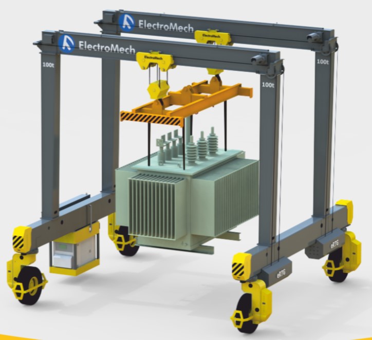 The globally recognized Rubber Tyred Gantry Crane (RTG) is a tyre-mounted material handling system engineered for smooth and effortless movement across large outdoor yards and industrial facilities. Its rail-less configuration delivers exceptional operational flexibility and efficient space utilization. This advanced solution is entirely designed, developed, and manufactured in-house by ElectroMech.